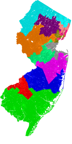 These maps by the website BDistricting show two ways of dividing the Garden State into Congressional voting districts with roughly equal population. (Under Article I, Section 2 of the Constitution, each State is apportioned a number of federal representatives which approximately corresponds to its share of the aggregate population of the 50 States, although every State is constitutionally guaranteed at least one House seat.) The map on the left shows the work of a computer algorithm designed to draw the Congressional voting districts in New Jersey in a logical and “optimally-compact” way. The map on the right, by contrast, shows the State’s current Congressional districts, which are drawn by flesh-and-blood people with vested political interests in “gaming the system,” in deciding how voters are apportioned. Look up your State’s voting map here.