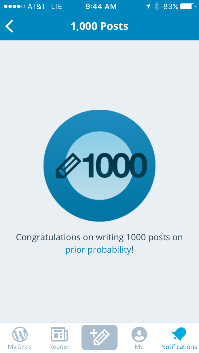 Above is the notification we received from WordPress. For the record, here is our first blog post, a picture titled Summer in Amsterdam from 5 July 2013. Here is our most visited one, an image titled Chess piece survival rates from 22 October 2014.