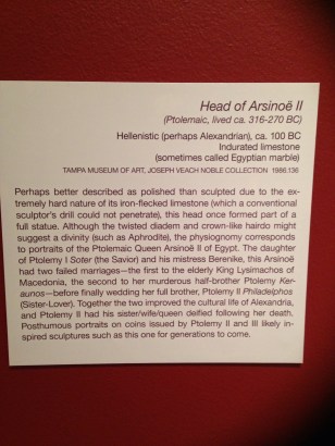 We recently visited the Tampa Museum of Art with our eldest (Adela) and youngest (Adys) daughters. This Ptolemaic piece was our favorite work of art from the museum’s modest collection, but what makes any given object a “work of art” as opposed to just an ordinary one? (Click on either image above to see a larger version.)