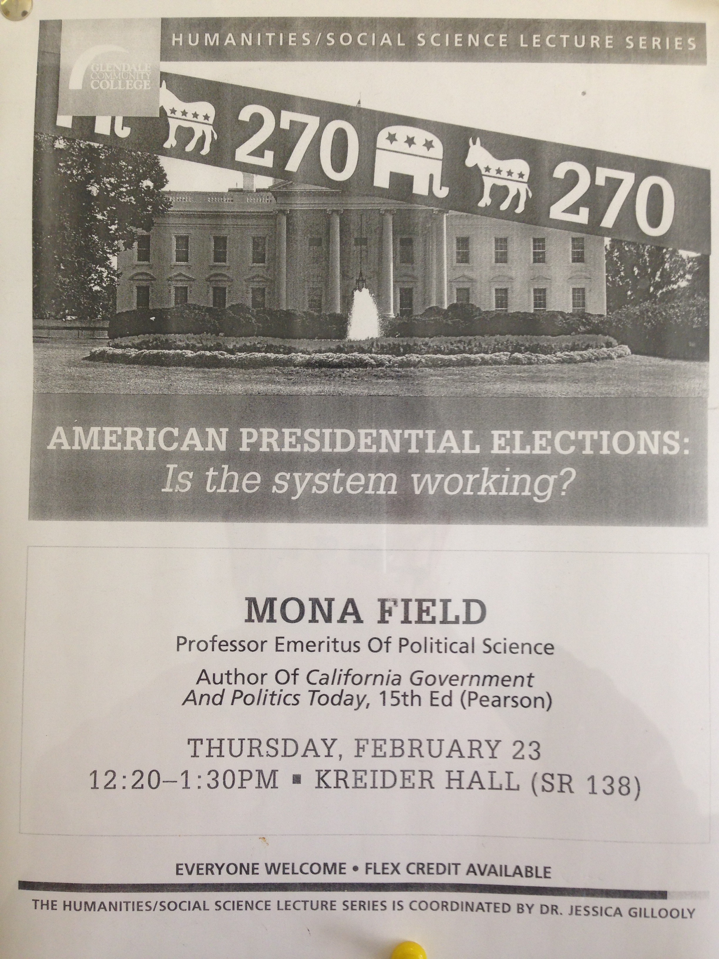 We just attended Professor Mona Field’s guest lecture on “American Presidential Elections” at Glendale Community College (see flyer below). Among other things, Prof. Field talked about the National Popular Vote Interstate Compact. In summary, this novel compact is designed to circumvent the archaic Electoral College system set forth in the Constitution. Specifically, States who join the compact thereby pre-commit to award their respective electoral college votes to the presidential candidate who wins the overall popular vote in all 50 States. Thus far, ten States (and D.C.) have already voted to join the compact, and these States represent 165 Electoral College votes. So, is this novel compact constitutional? Can we change the Constitution without formally amending it?