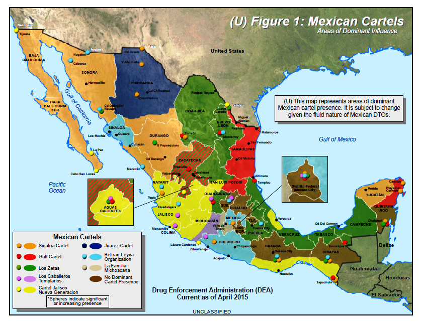 They seem to be almost evenly distributed as far as border turf for the four major Cartels.