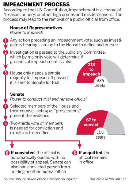 Is this a good bet? A simple majority in the House is sufficient to impeach President Trump, although a two-thirds super-majority in the Senate is required to actually remove him from office. (See chart below.) According to this headcount in Politico (updated 9/26), 208 221 members of the House now support impeachment or an impeachment inquiry. But even if Trump is impeached by the House before the end of this year, will Senator Mitch McConnell “pull a Merrick Garland” and refuse to convene a trial? After all, the next presidential election is just 13 months away …