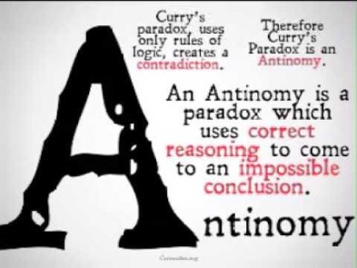 Illicit promises–like a promise to obstruct justice or Shylock’s pound-of-flesh pact in The Merchant of Venice or the usurious loan agreement at the center of the Buckeye Check Cashing case or the other examples in our previous post–pose a contradiction or moral paradox. The paradox is this: If bare promises are morally binding, a position subscribed to by most, but not all, moral philosophers, then an immoral or illegal promise poses a potential “moral antinomy” (see image below): the moral obligation to perform an immoral or illegal action.