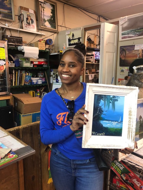 In 1957, sixteen-year-old Carroll met Harold Newton, later dubbed the original Highwayman. He was painting a landscape along the side of the road. There were red flames on his car. Yet what shocked the young African American girl most of all was discovering a black man who didn’t work in the orange groves, who made a living off of his paintings. It wasn’t long before she was creating and selling her own landscapes, and the other Highwaymen, taking note of her startling use of color, welcomed her into the fold.