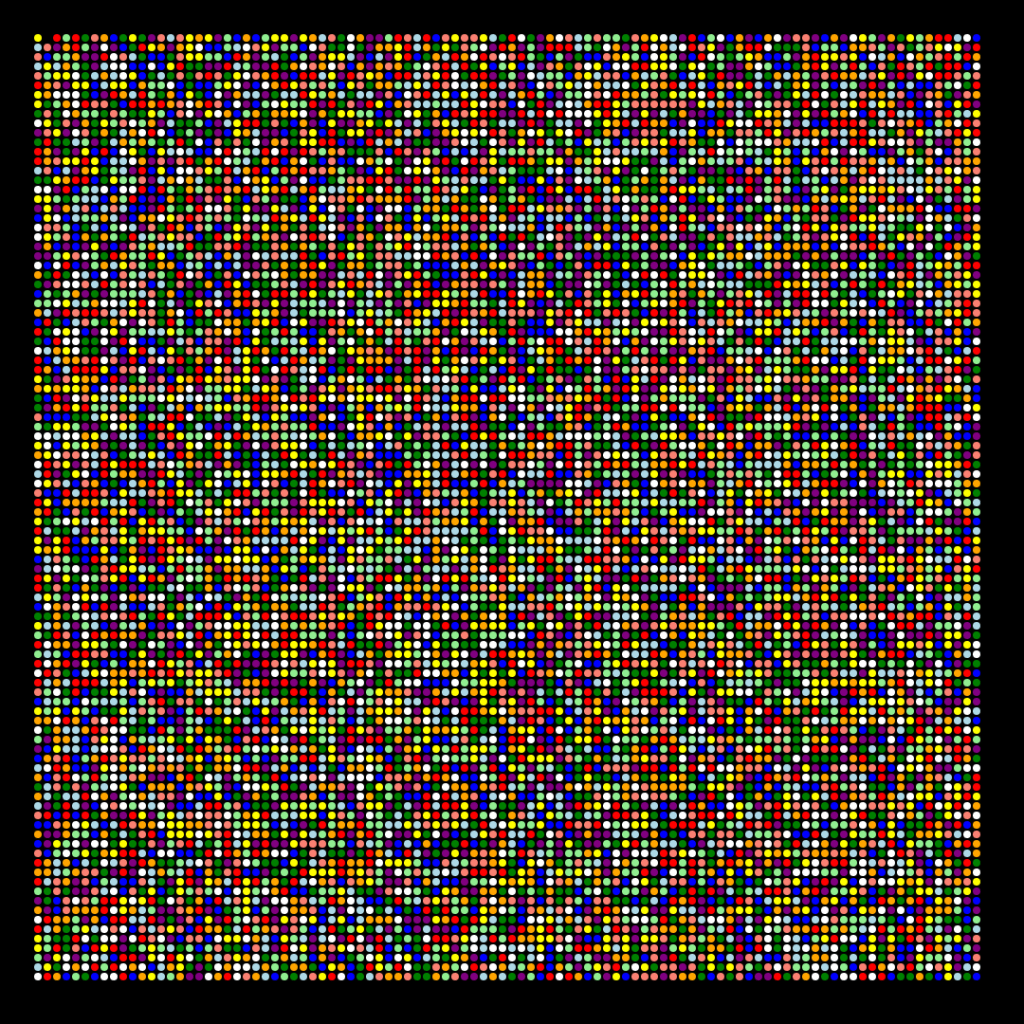 Happy Pi Day! u/Olivesan created this 100 x 100 visualization of the first 10,000 digits of pi using the HTML5 canvas element and JavaScript. Each digit of pi is represented by the following color: