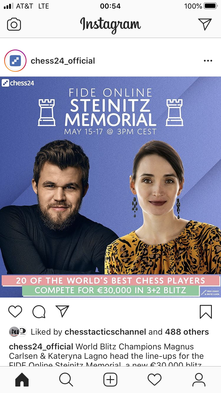The Steinitz Memorial Chess Tournament is this weekend! As an aside, one of the best things about Instagram are the various chess accounts, like the one below: