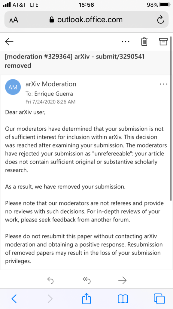 I didn’t realize that a “repository” like arXiv was also a “referee”… here I was thinking I could post my own paper there, now I’m not so sure.