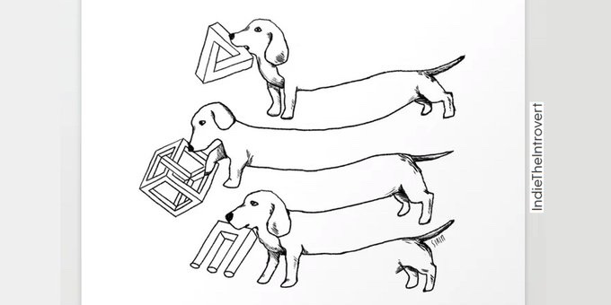 Check out these artworks by IndieTheIntrovert, including the one pictured below, which is titled “Escher’s Other Dogs.” FYI: M. C. Escher, one of the major inspirations of Douglas Hofstadter’s 1979 book Gödel, Escher, Bach, was a Dutch graphic artist who made mathematically-inspired art. Among other things, his work features mathematical objects and operations including “impossible objects” and explorations of infinity, and his work has appeared on the covers of many books and record albums. According to Wikipedia (see footnote 71 of this Wikipedia entry), Escher’s art became well-known among scientists and mathematicians, and in popular culture, after it was featured by Martin Gardner in his April 1966 Mathematical Games column in Scientific American.
