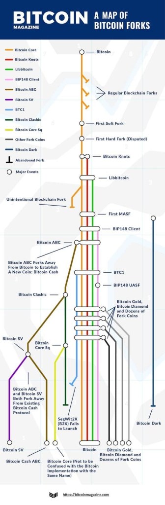 Which one?! My “bitcoin prior” is that Bitcoin is insanely-overvalued, that it’s a purely speculative “bubble” akin to the South Sea Bubble of 1720 or the even more famous episode of Tulip mania in 17th-Century Amsterdam. Now that I see this “map of bitcoin forks” (pictured below), in which direction should I update my bitcoin prior? As an aside, I wrote about the taxation of Bitcoin here, and here is a bonus Bitcoin video (starring Remy): https://youtube.com/watch?v=UG7zLhEWanc