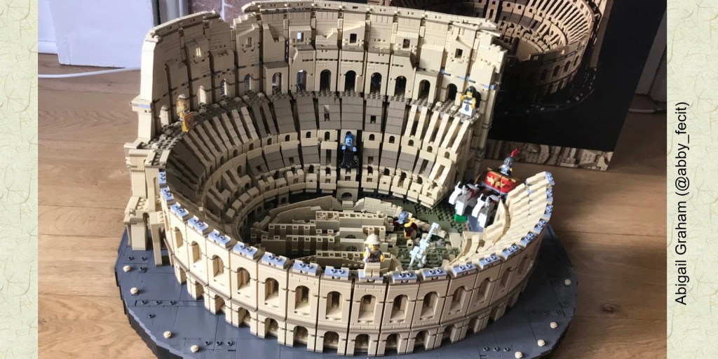 The Lego image pictured below is from Dr Abigail Graham (@abby_fecit), an archaeology-minded historian and Romanophile. Her article is titled: “Reconstructing the Past: Lego Colosseum & 8 reasons why Lego is great training for an archaeologist.” Source: https://bit.ly/37xiwt2