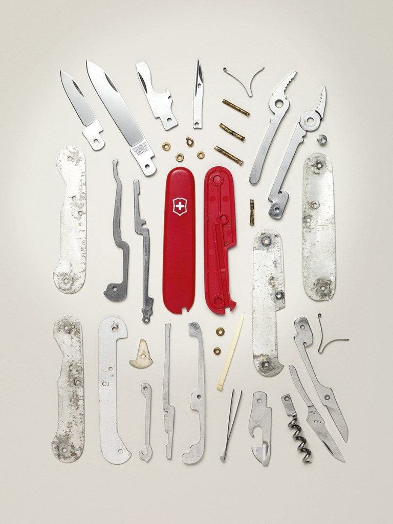 What makes something a work of art? I am once again interrupting my multi-part series on self-ownership to share this fascinating art project by Todd McLellan titled “Things Comes Apart” in which McLellan takes apart 50 ordinary objects, such as a Swiss Army knife (see below), and exposes their inner parts and workings. More details here, via Colossal; hat tip: @pickover.