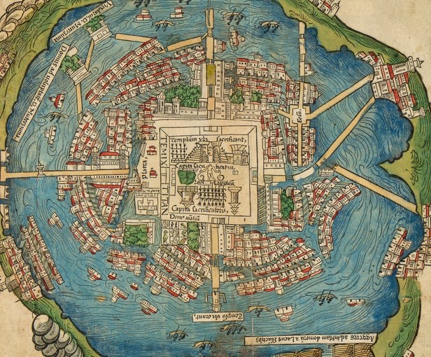 Five-hundred years ago today (August 13), in the year 1521 A.D., the darkest day in Mexican history occurred: Spanish forces led by conquistador Hernán Cortés captured the Aztec Emperor Cuauhtémoc and conquered the capital of Tenochtitlan, a map of which is pictured below. More details here and here. (Updated on 8/15.)