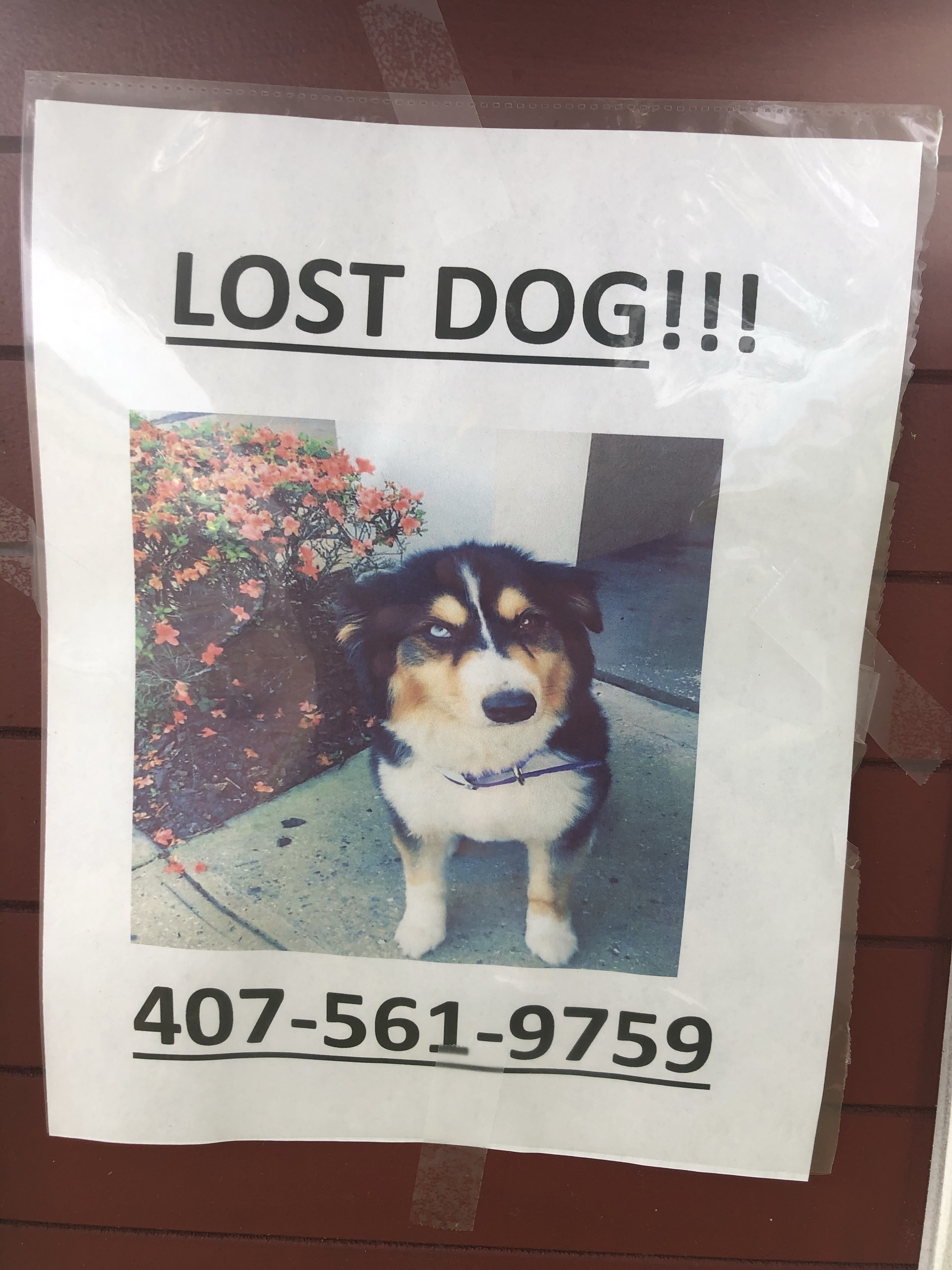 1. I wonder if someone has ever called for a town a town ordinance standardizing lost dog fliers.