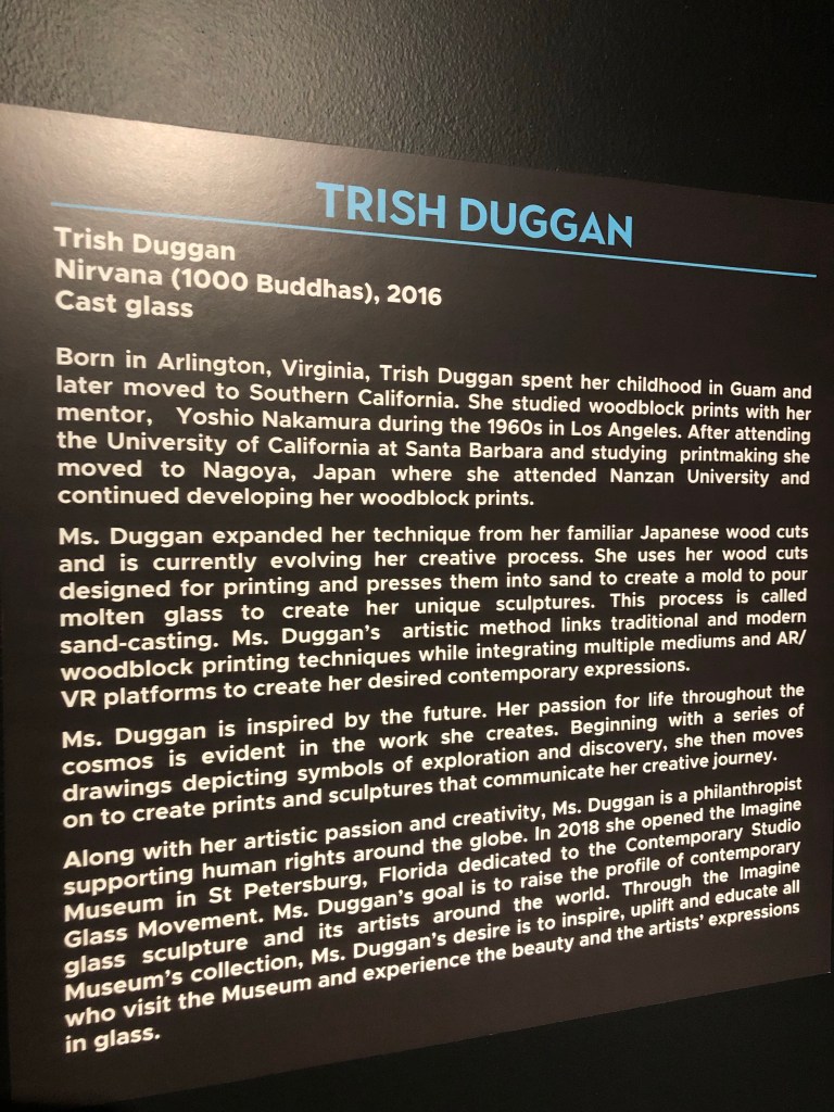 This remarkable work of glass art by Trish Duggan (part of which is pictured below) is on display at the Imagine Museum in St Petersburg, Florida.
