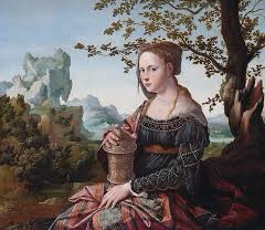 Via Wikipedia: “On the Wednesday before his death [Holy Wednesday], Jesus was in Bethany, in the house of Simon the Leper. As he sat at the supper table with his disciples, a woman named Mary anointed Jesus’ head and feet with a costly oil of spikenard.” More details here.