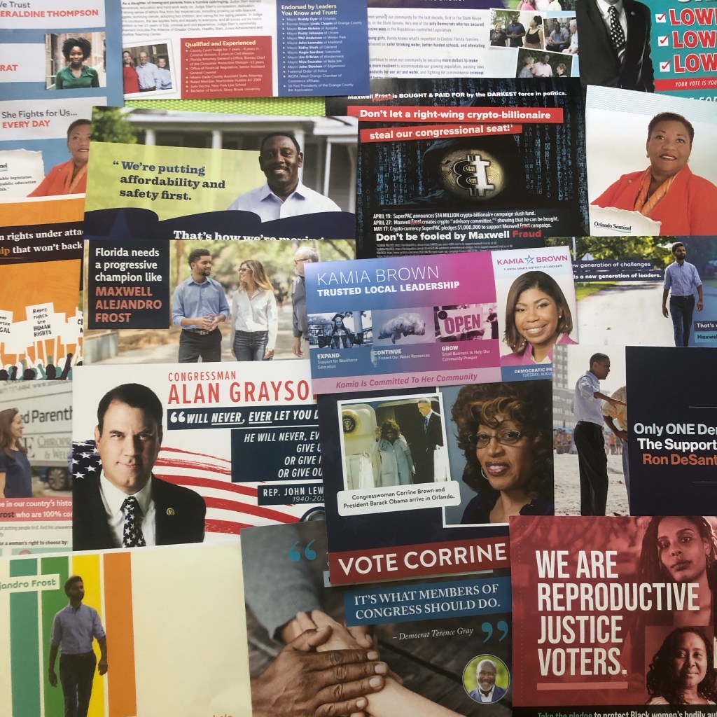 Today (23 August) is Election Day in Florida. Although it is just a “primary”, below is a small sample of some of the “political junk mail” my wife, a registered Democrat, received this month. (Life hack: I am a registered Independent, so none of these glossy materials were addressed to me!)