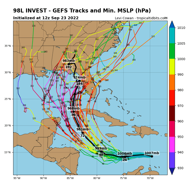 I am following the development a new tropical storm in the Caribbean very closely. (This storm is expected to make landfall somewhere on the Florida peninsula next week.) What if, instead of taking the average of all the weather models to predict the trajectory of a tropical storm, the National Weather Service assigned a probability value to each of the possible trajectories based on the past performance of each model?