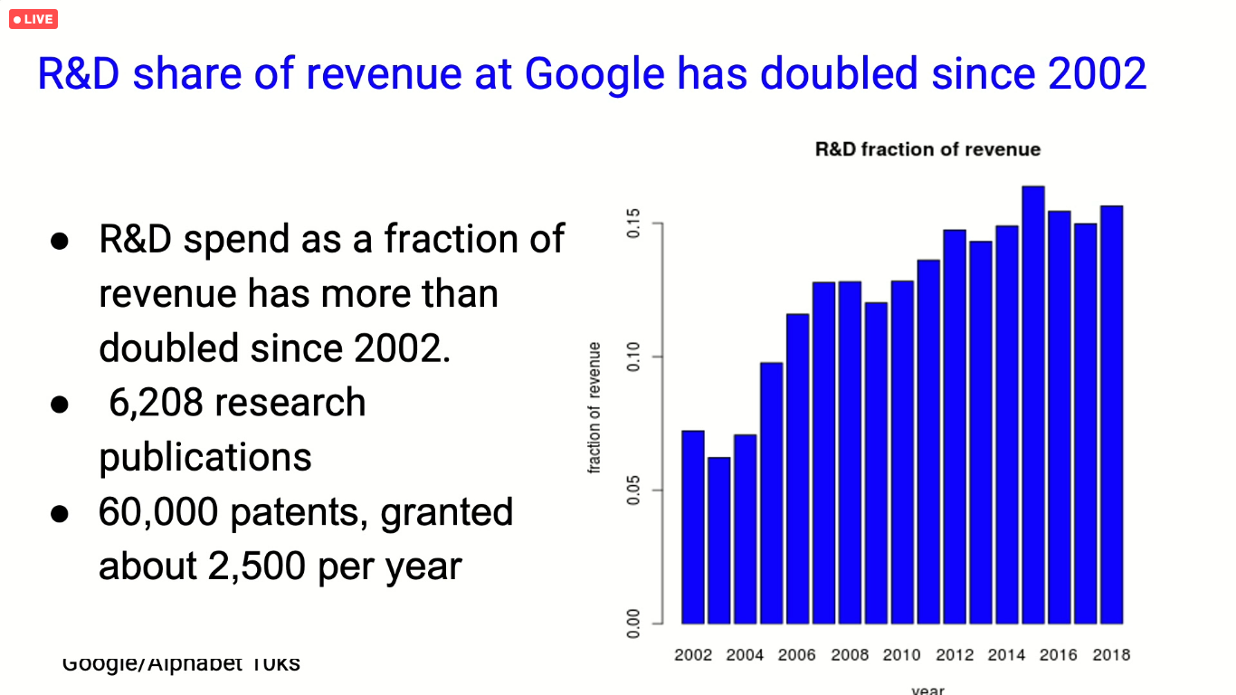 - Hal Varian (Google): Google has more than 60,000 patents. (See slide below from Professor Varian’s Cato talk.)