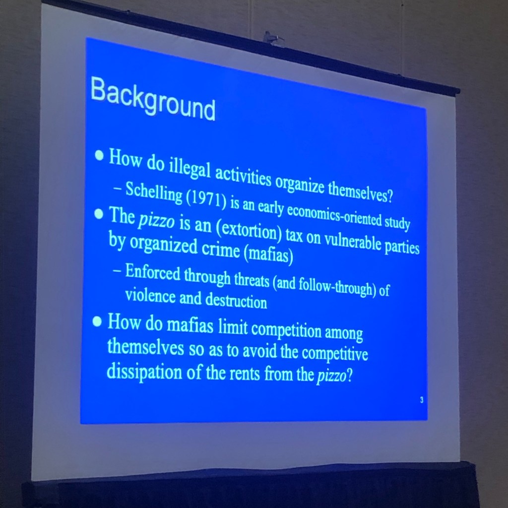 I will be leading a panel on “New Perspectives on Adam Smith” at the annual meeting of the Southern Economic Association later today. Thus far, my favorite talk has been Henry Thompson’s on “The Organization of Extortion”, which explores the law and economics of criminal protection rackets. Alas, Professor Thompson’s extortion paper is not yet posted to SSRN, so in the meantime, here is his previous work on “Cosa Nostra Courts“.