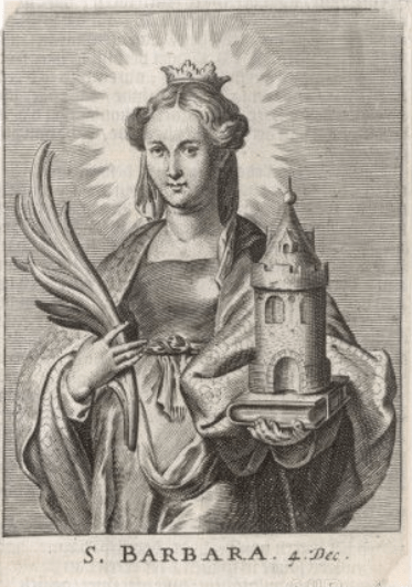 The beautiful city of Santa Barbara in California, where I went to college, takes its name from Saint Barbara, the patron saint of armourers, artillerymen, architects, mathematicians, miners, and the Italian Navy, and today (4 December) is her feast day. (In Spanish, this day is la fiesta patronal en honor de Santa Bárbara.) Among other things, according to this account of Saint Barbara’s life, she was known for her beauty but never married: