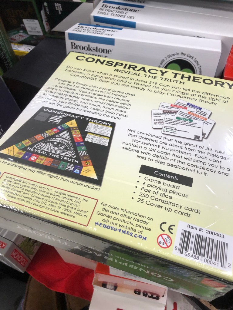 Among other things, this board game includes 250 Conspiracy Question Cards, 25 Cover-up Cards, and an instruction booklet, “unless the Illuminati took them.” What are you waiting for? Order yours here today!