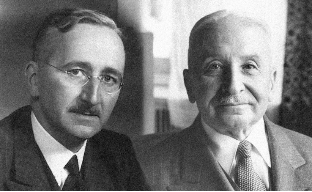 To sum up, we don’t need trusted arbiters to tells us whether a given conspiracy theory is true or not, and in any case no such arbiters exist in the real world. But by keeping truth markets open indefinitely, the market price of any given belief contract will itself be the arbiter of the truth of Prop X! How? Because markets and prices reflect dispersed or global information and rapidly adjust to changing conditions, a fundamental observation that goes back to “The Use of Knowledge in Society” by F. A. Hayek (pictured below, left), and markets are more likely to lead to the production of new information in the first place, an idea that can be traced to Ludwig von Mises’ classic treatise Human Action.