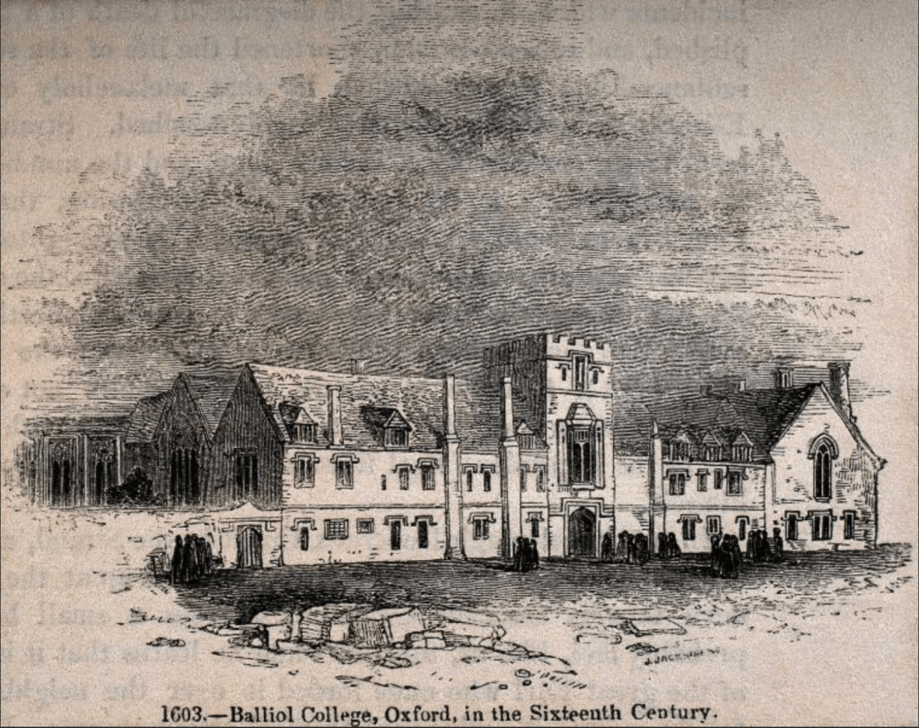Although Bagehot incorrectly tells us in the sixth paragraph of his essay that the great Adam Smith was born in 1713 (Smith, in fact, was most likely born ten years later), Bagehot is right about two things: (1) the future economist was born to a widow, so Smith never met his father, and (2) we know next to nothing about Smith’s childhood and early years, except that Smith attended the University of Glasgow and that he must have been a good student, for he was awarded a special scholarship to attend Oxford. (Smith won a Snell Exhibition from the University of Glasgow to Balliol College, Oxford, to be more precise.) Bagehot then devotes the next two paragraphs (7 & 8) of his essay to Smith’s studies at Balliol College (pictured below), making the following points: