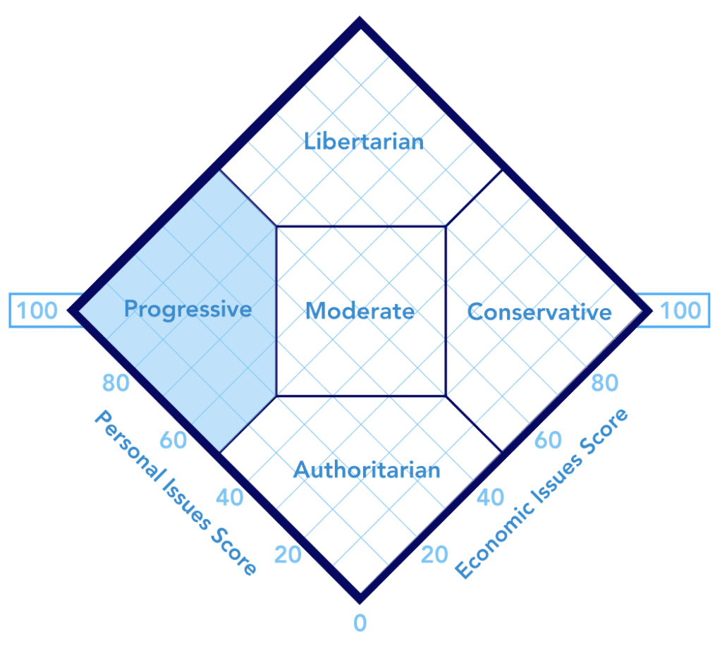 I disagree with “Libertarian” defined on your graph as “100%” on both an “economic” and “personal issues” score. There’s a third human dimension in which Libertarianism scores near zero, but that orthogonal dimension is not shown on your graph.