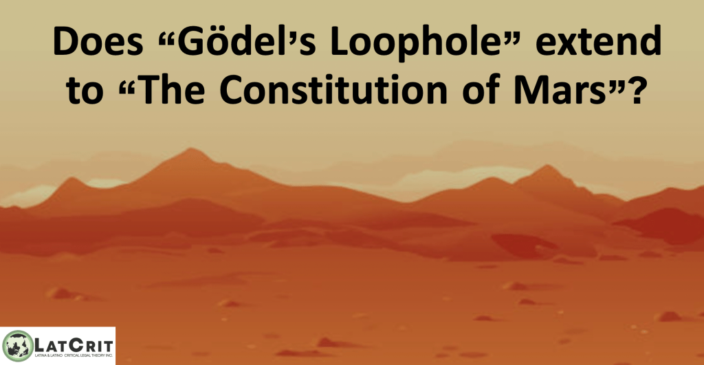 As I mentioned in my previous post, I was invited to present my work on “Outer Space Justice” at the LatCrit 2023 Biennial Conference, which is taking place this weekend. By coincidence, my colleague and new friend Dean Spade gave the Jerome M. Culp Memorial Lecture yesterday (Friday, 6 October), and at the end of his lecture he lamented in passing how some billionaires on Earth are considering creating colonies in outer space in response to ecological threats on Earth. This observation provides the perfect backdrop for my talk on “Outer Space Justice” later today. Although the focus of my talk is narrow and technical (see here, for example), my short slide deck is posted below: